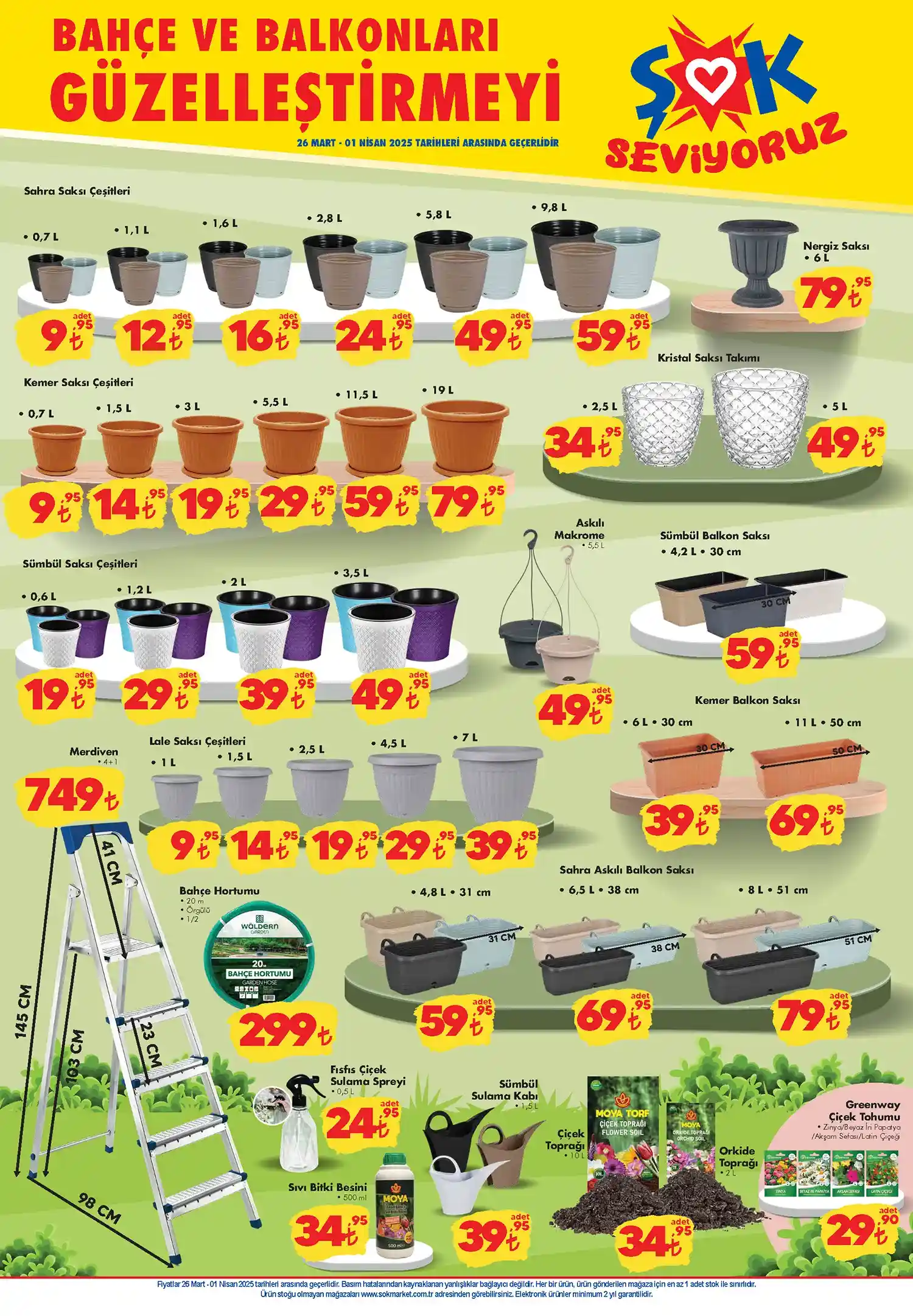ŞOK Market, 26 Mart 2025 Çarşamba günü itibarıyla geçerli olacak yeni aktüel kataloğunu yayınladı. Baharın gelişiyle birlikte bahçe, balkon, ev yaşamı ve kişisel bakım ürünlerinde büyük fırsatlar raflarda yerini alıyor. Katalogda dikkat çeken ürünler arasında sağlam bahçe mobilyalarından çocuk ürünlerine, temizlik ürünlerinden kahvaltılıklara kadar birçok kategoriye özel kampanyalar var.